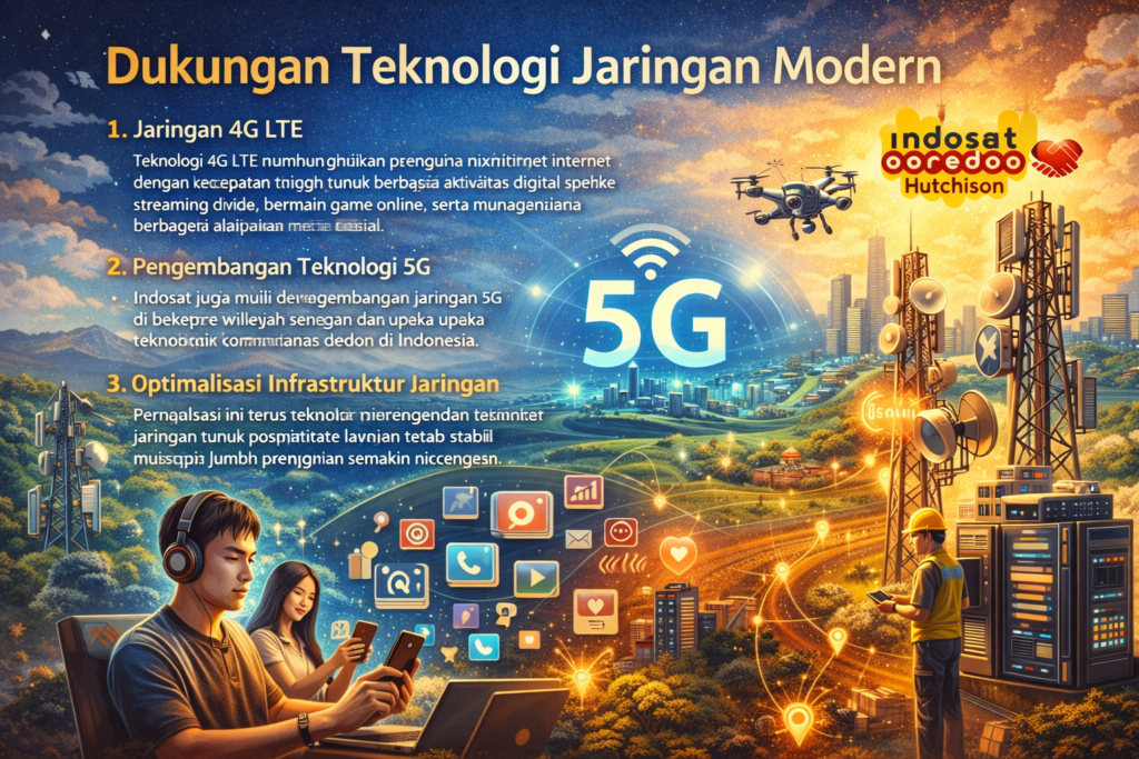 Indosat Ooredoo Hutchison juga mendukung berbagai teknologi jaringan yang memudahkan pengguna dalam mengakses internet dengan lebih cepat dan lancar.